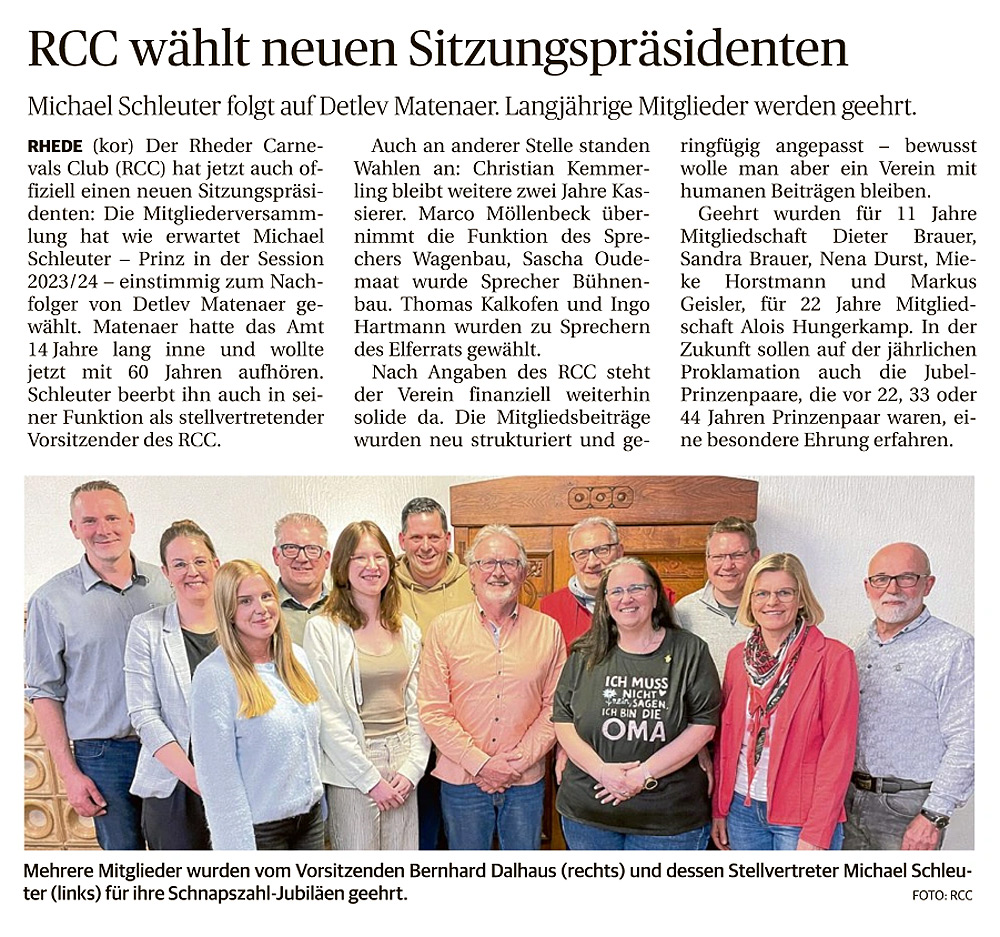 Jahreshauptversammlung RCC + BBV Nachbericht